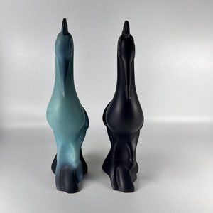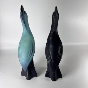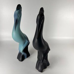 Vintage Crane Bird Figurine Sculpture Bell of California Blue Black MCM Lot of 2