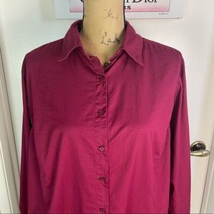 Chico’s Top Blouse Women Size 22/24 Button Up Non-Iron Wine Color Tunic Plus