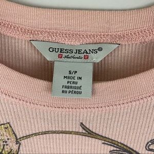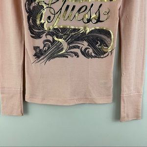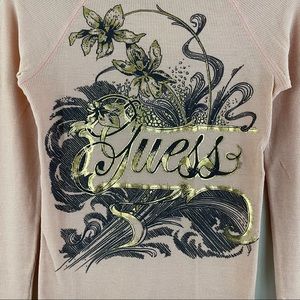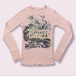 Vintage Y2K, light baby pink graphic long sleeve top by Guess.