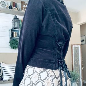 Vintage 90s Lip Service Hot Topic black velvet corset lace up back blazer jacket