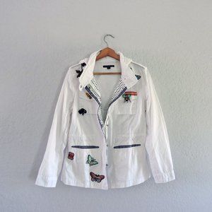 Boston Proper M jacket top white embroidered 3D applique embellished butterflies