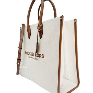 Michael Kors Large Logo Jacquard Tote Crossbody Bag Luggage Canvas Logo