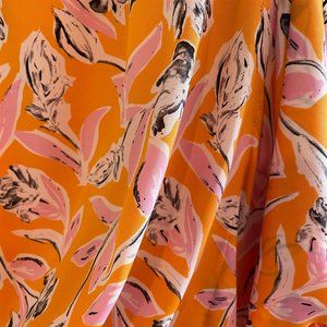 NWT Sachin Babi AVA Orange Pink Floral Ruffle Midi Wrap Dress Puff Sleeve