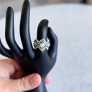 Accented with crystal stud and whipstitch