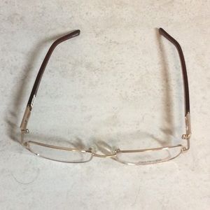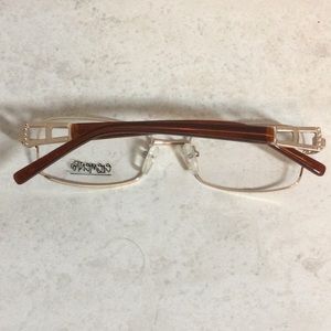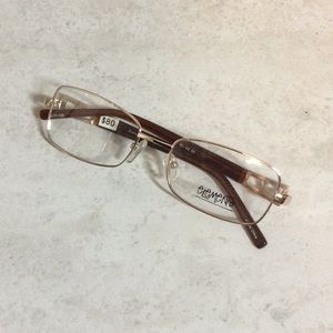 NWT New old stock (display) women’s Elements gold metal eyeglasses style EL 122-03 color 52-17-135 gold. They have never been purchased but only used for display. Beautiful gold two box pattern with brown bow ends. You will need to substitute your prescription for lenses. No flaws, pet free, smoke free home. Reasonable offers accepted.