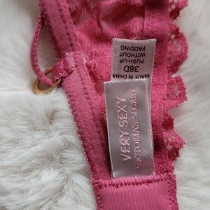 VS Very Sexy Bra. 36 D. Pink Lace. Adjustable straps. 2 clasp Adjustable band. Underwire. Branded strap adjusters. Excellent condition.
