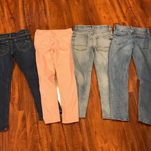 Blue (Place) adjustable waist boot cut, pink (Squeeze) skinny jeans,blue (Cat &Jack) adjustable waist skinny, blue (Old Navy) adjustable waist skinny jeans