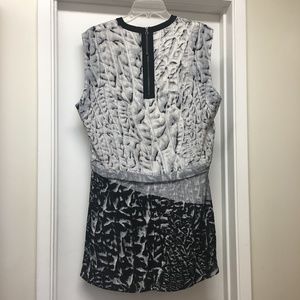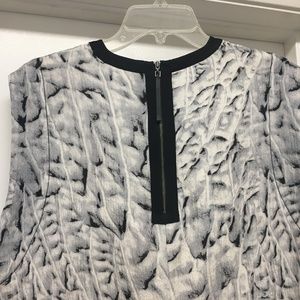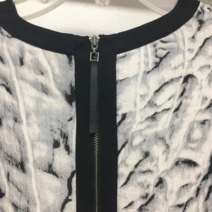 Very cool HELMUT LANG Annex Gray Black White Printed Silk Shift Dress, Sz 4.. in great condition !
