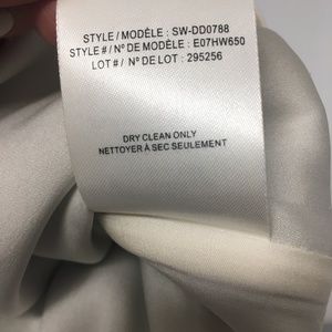 Sleeveless; wide shoulder coverage. Relaxed silhouette. Dropped skirt. Back zip closure. Lined.