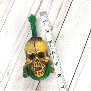 Rare New Vintage Yellow Skull Green Snake Tobacco Smoke Handmade Pipe Gothic Art