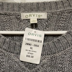 This beautifully stitched wool blend sweater is machine washable and has never been worn. Size extra-large. Mixed cable crewneck. From a home free of smoke and pets.