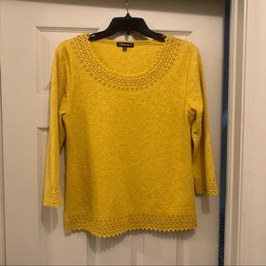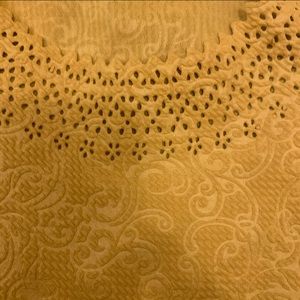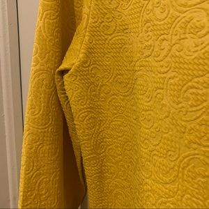 NWOT Chances R Mustard Blouse. Women’s Small. Has stretch and structure. Beautiful embossing and hem detail. Beautiful.
