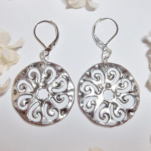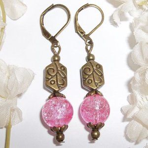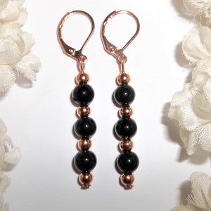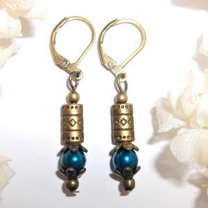 This elegant, beaded earrings set is brand new & handmade by me - wvluckygirl. Done with white acrylic faux pearl beads and antiqued gold toned costume jewelry beads. The pair dangle & drops from lever backs for her pierced ears. Nickel safe. Measure 2 1/4 inches tall & not quite 3/8 inch wide. Each single earring weighs 2.2 grams. Lightweight! You will love the long length of these. Very eye-catching! People are sure to give you lots of compliments when you wear them. Would also make a great gift idea!!!