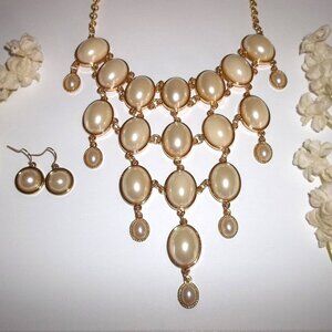 Earring, Pearl Earring, White and Gold Earring, White Earring, Earring Set 7899