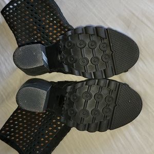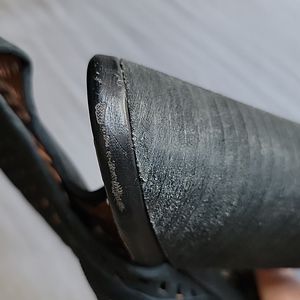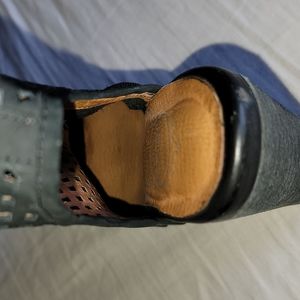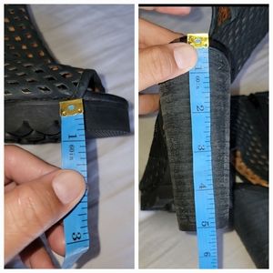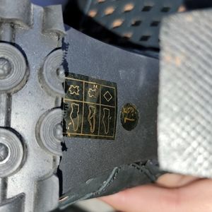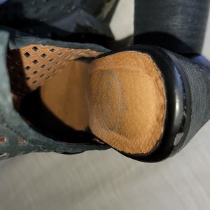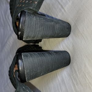In good condition. Has some scuffs/peeling around. The most noticeable ones are at the back heel area where leather is....see photos provided. They also have scuffs on actual heels also. They also have sole wear. See photos for heel size. Inside side zipper closure. No box. Size 7.5.