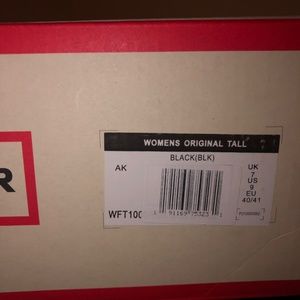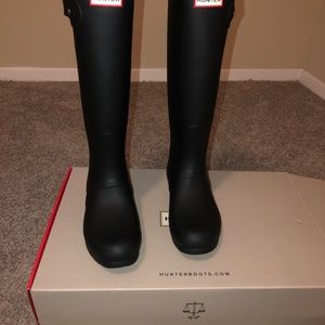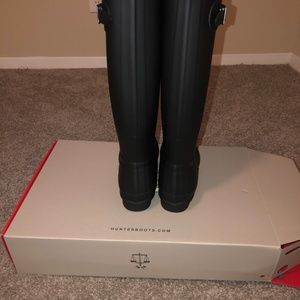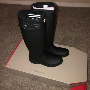 Black hunter rain boots. Completely NEW and never worn. Got them thinking that I would wear them, but I do not wear rain boots, so they have sat in my closet in the box. Size 9.