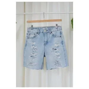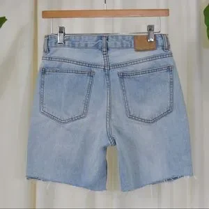 PULL & BEAR Distressed Ripped Bermuda Jean Denim Shorts