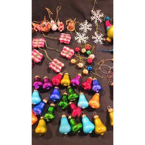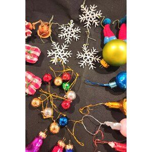 63 Vintage Mini Christmas Ornaments Set Mixed Glass