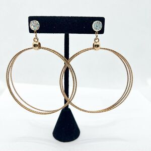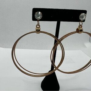 🍭6/$30 Large gold rhinestone studded double hoop earrings