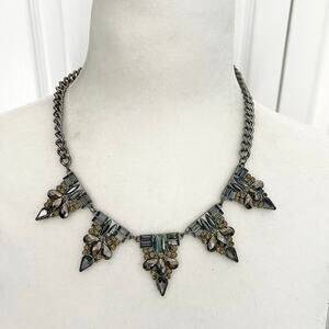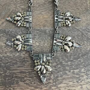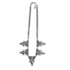 🍭6/$30 Silver jewel studded spike bib statement necklace- missing some stones