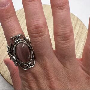 🍭6/$30 Silver tone polished gem Victorian style stretch ring