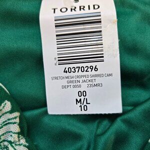 630-14 NWT Torrid Green Floral Mesh Cropped Shirred Cami Top Size 00 (10/12) NEW