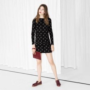 & Other Stories Black White Shift Mini Long Sleeve Dress Cactus Print 4