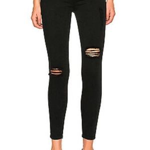 Black ankle jeans with stretch and distressing throughout. SO soft and comfy - a little bit of staining on one knee!