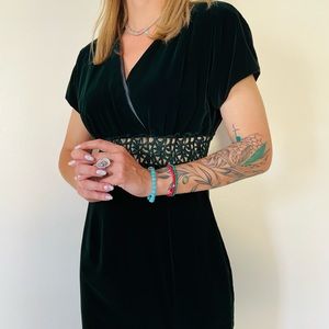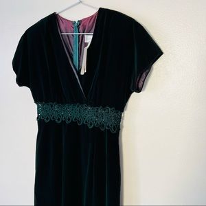 New vintage casual corner maxi velvet crochet dress front slit
