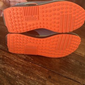 90’s are back! These Pumas have been worn once and are super comfy but too small for me (I’m a size 8; they’ll fit a 7 or 7 & 1/2 fine). Several shades of grey that blend well with the green tint and color pops! Great for fall!