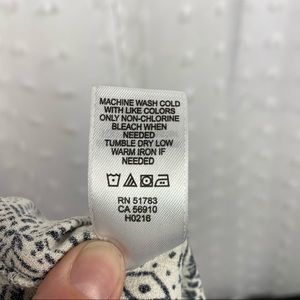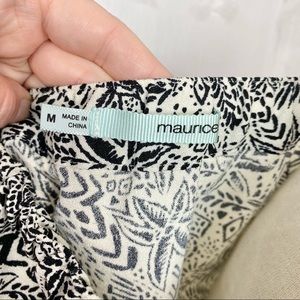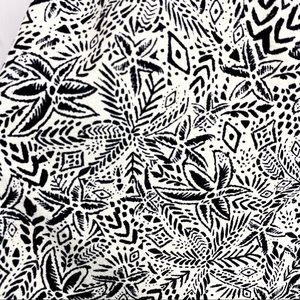 Maurice’s black & off white cream floral print skirt. Such a cute skirt, perfect for spring & summer. Lightweight, buttons down the front, elastic at back waist, a little bit of flounce. One small pull- seen in pics & not very noticeable when worn. Marked a medium. Measures (flat, unstretched, approximate): waist: 15in, hip: 24in, length: 18.5in