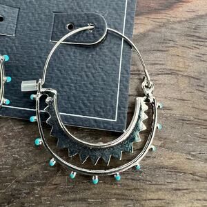 New Melrose and Market Silver Tone and Turquoise Beaded Boho Hoop Earrings