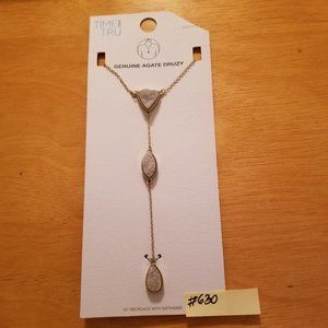 #630Z NEW Time and Tru “Gold” and Light Grey Real Agate Druzy Y Adjustable Necklace. The stone is very "silvery" with lots of shimmer! In great condition and comes in original packaging. Great addition for any collection. Never have been out of original packaging. Make an offer. No returns.