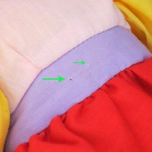 A couple of tiny pin holes on dress (2nd photo). Tush tags is faded.