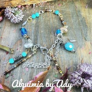 Pink quartz bracelet with sea glass