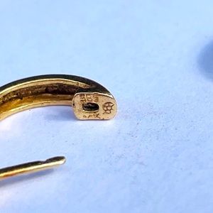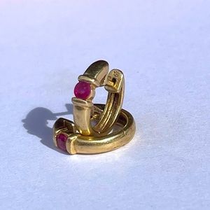 Authentic Vintage 14k Gold Huggie Hoops with pink ruby stones.