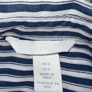 Lightweight blouse with blue and white vertical stripes that can be worn for casual office attire, summer vacation, or on the weekends. Looks great tucked into jeans or tied at the waist.