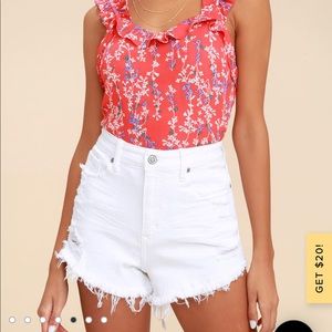 Lulus White High-Waisted Cutoff Denim Shorts_NWT