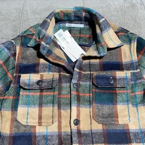 * 1 ZARA Plaid Overshirt, Long Sleeves with Buttoned Cuffs, Patch Pockets at Chest and Side Pockets,Size Medium, Beautiful and Super Soft, New With Tags