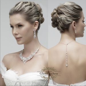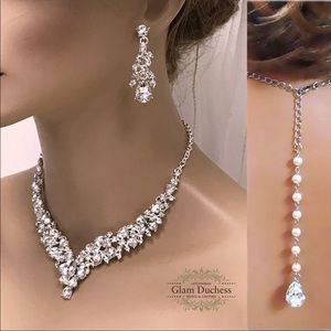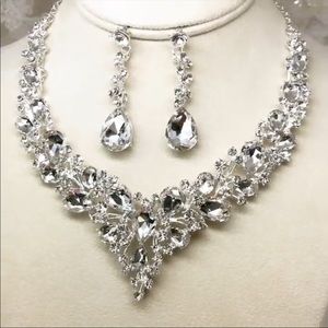 Glam Bride Wedding Necklace & Earring Jewelry Set Silver Fashion
