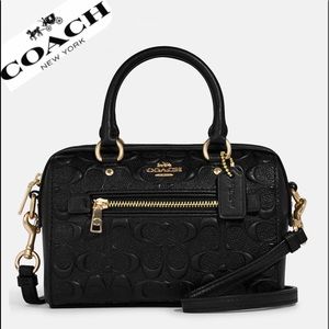 NWT COACH MINI ROWAN CROSSBODY IN SIGNATURE LEATHER GOLD/BLACK SHOULDER BAG