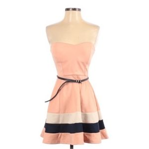 Cute and Trendy, Peach strapless above the knee, Bottom Stripped Dress - Perfect for day or night (belt added by me) NWT