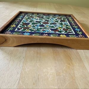 Armenian pottery Jerusalem. Clay tile trivet in a wooden case