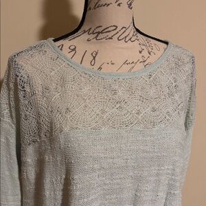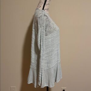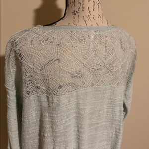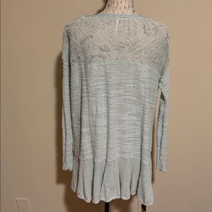 Free People Womens Knit Sweater Peplum Top with Lace Detail and Ruffled Hem Long Sleeve