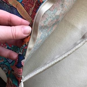 17 1/2” x 17 1/2”. Brings a real pop of peace and color to any room. Nice thick cotton linen material with blank backside. Message me if you would like multiple cases.