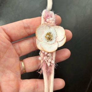 Used once! Like new! This listing is for the Flowers, canopy and clips. Please note: the flowers are held with clips for easy removal. Flowers are hot glued to each other on a wire crown. The clips keeps them attached to the lace canopy. Basket and pillows not included. For reference only! I used a 17” round basket in this photo shoot. This is a photography prop for newborns. Final sale.