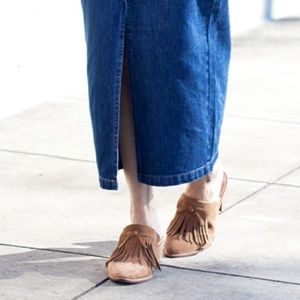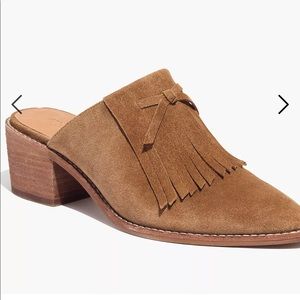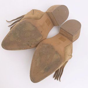 Menswear-inspired fringe and a bold pointed toe make this slip-on mule a serious statement-maker with a bit of a Western vibe. An oiled suede finish makes this one extra-special, plus the low stacked heel has just the right amount of height. When you select your size, "H" equals a half size.