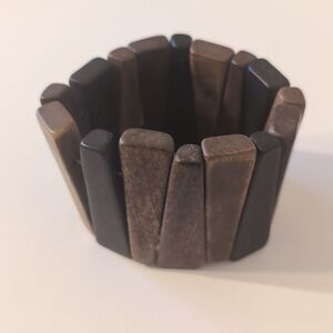631 Chunky Brown and Tan Wood Beaded Stretch Bracelet