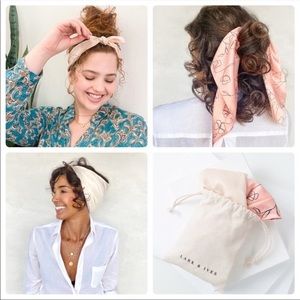 NWOT - Minimalist Pair Lark & Ives Scarves A fabulous way to up the glamour of any outfit, hairdo or purse! 20 x 20 in (51 x 51 cm) Made with 100% Polyester. Packed in a linen bag.