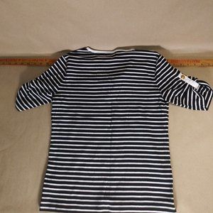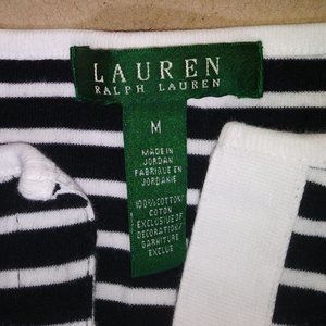 Lauren Ralph Lauren V-Neck Nautical Stripe Blue White Roll Tab Sleeve Size M